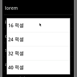 new -> folder(만약 안드로이드 folder가 있으면 그것을 클릭) 생성하고자 하는 프로젝트의 res에 접근해 menu라는 폴더 생성 메뉴 폴더에 우클릭 후 new -> Other menu.xml file 생성 메뉴 생성되면 하단에 menu.xml 에 접근하여 직접 코딩 package com.comonsware.android.menus3; import android.app.Activity; import android.os.Bundle; import android.view.Menu; import android.view.MenuInflater; import android.view.MenuItem; import android.widget.TextView; import android.widget.Toa..
